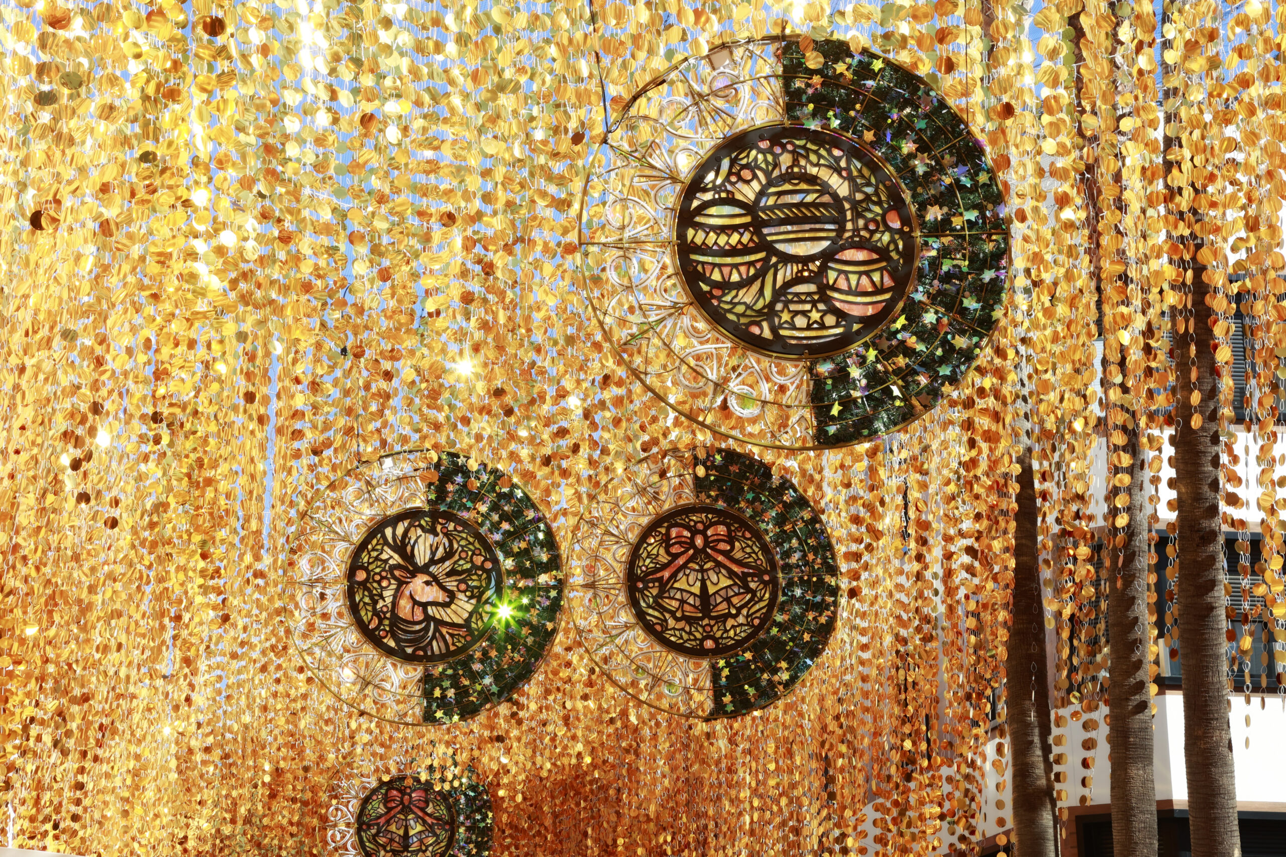 O teto mágico dourado é complementado por medalhões fabricados com Ecogreenlux, a tecnologia patenteada pelo Ximenez Group que reduz a poluição luminosa até 93% e permite poupar até 60% de energia, reforçando o compromisso da empresa com a sustentabilidade e a eficiência energética.